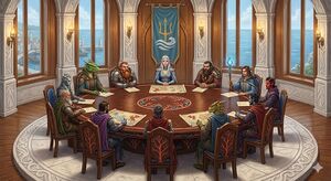 A significant gathering of leaders and allies in Aquamara to discuss emerging threats and coordinate a response to the Cult of the Dragon.