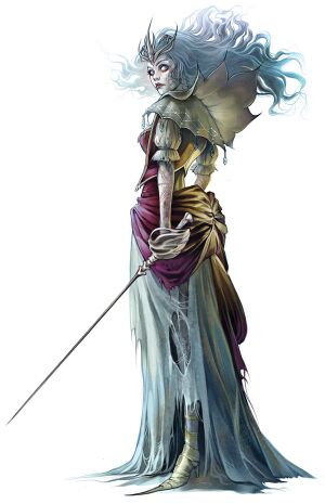 Ancient elven lich (baelnorn) whose life force is tied to the blue flame. Her goal is to guide the lost souls of the undead to the veil. One of 8 sisters, each with handmaidens.